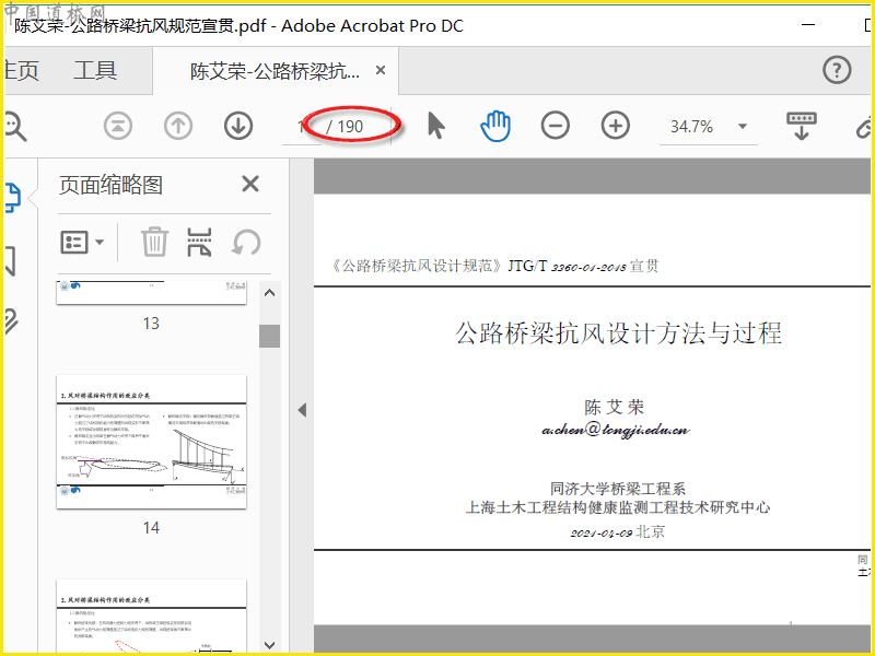 2021年4月同济大学陈艾荣教授《公路桥梁抗风设计规范》JTG/T3360-01-2018宣贯的PPT文件,pdf共190页