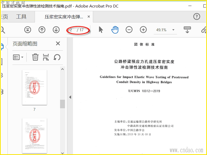 T∕CHTS 10012-2019 公路桥梁预应力孔道压浆密实度冲击弹性波检测技术指南