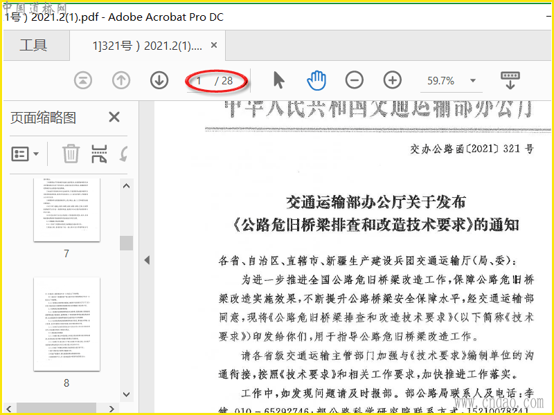 公路危旧桥梁排查和改造技术要求(交办公路函[2021]321号)2021.2.交通运输部 最新的 文