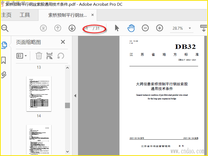 DB32T 4002-2021 大跨径悬索桥预制平行钢丝索股通用技术条件
