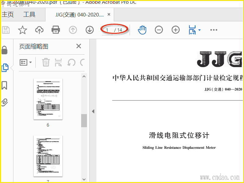 滑线电阻式位移计JJG(交通) 040-2020