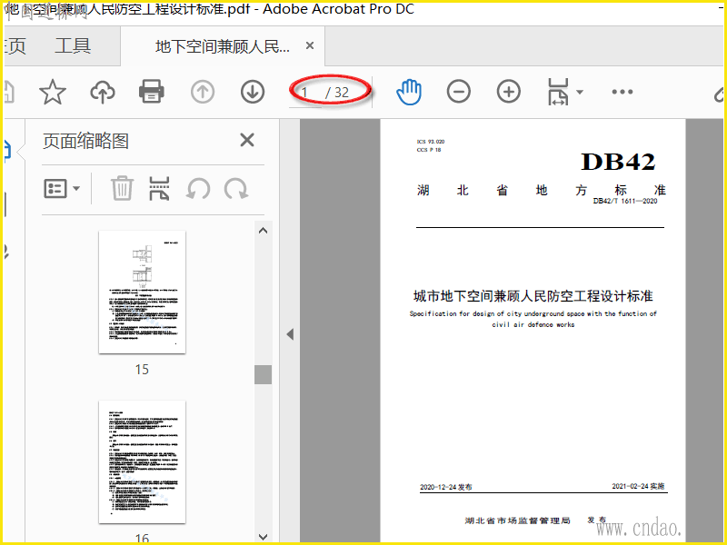 DB42T1611-2020城市地下空间兼顾人民防空工程设计标准