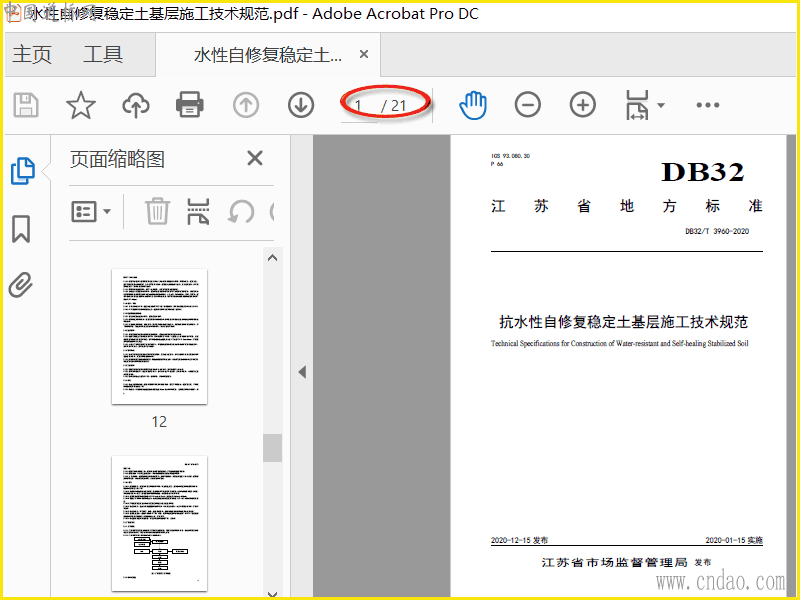 DB32T 3960-2020 抗水性自修复稳定土基层施工技术规范
