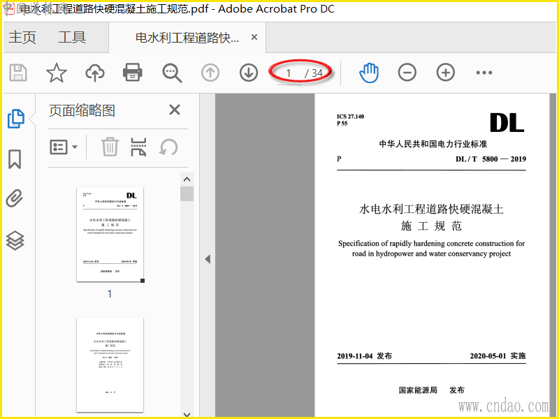 DLT 5800-2019 水电水利工程道路快硬混凝土施工规范