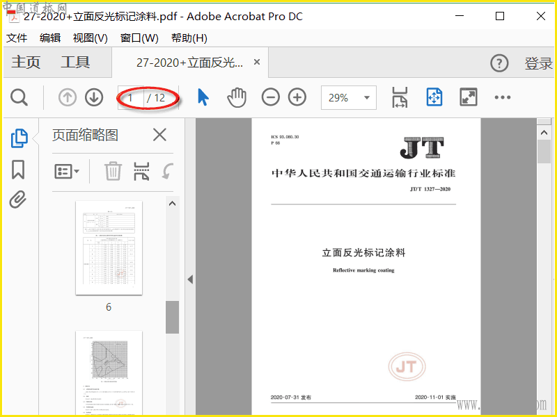 JT∕T 1327-2020立面反光标记涂料