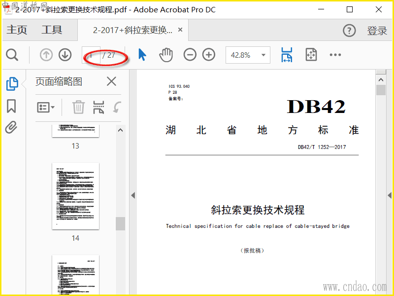 DB42T 1252-2017 斜拉索更换技术规程