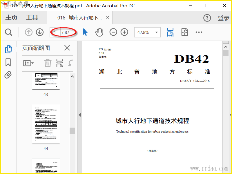 DB42T 1237-2016 城市人行地下通道技术规程