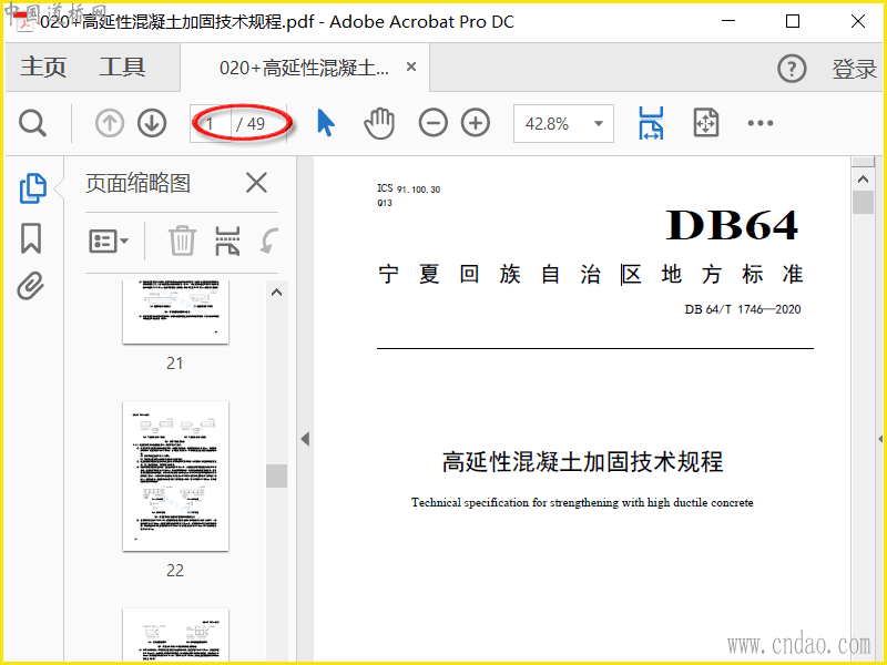 DB64 1746-2020 高延性混凝土加固技术规程