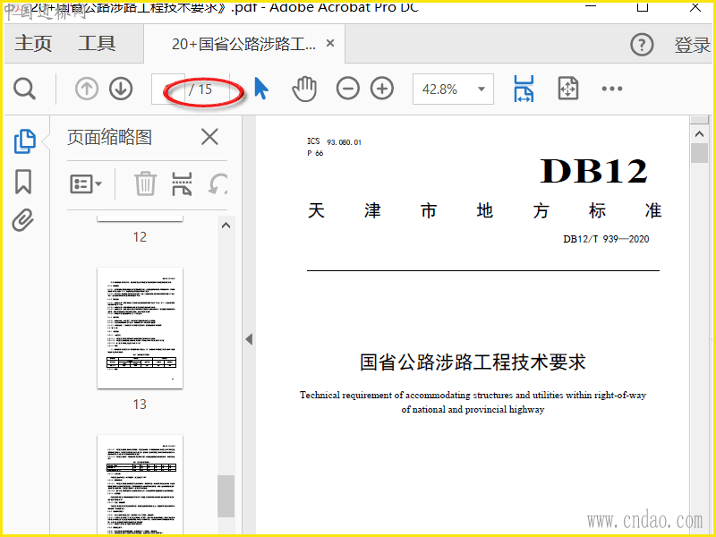 《DB12∕T 939-2020 国省公路涉路工程技术要求》