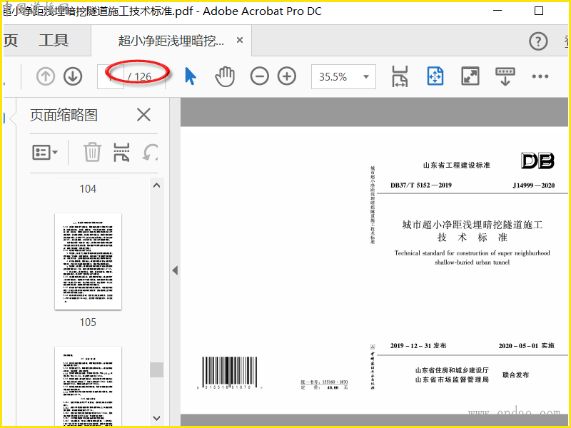 DB37T 5152-2019 城市超小净距浅埋暗挖隧道施工技术标准