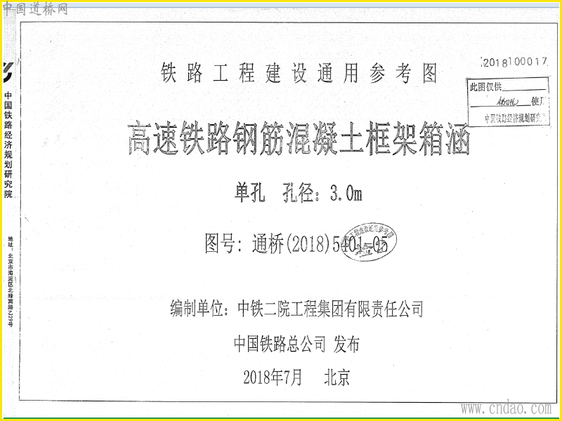 高速铁路钢筋混凝土框架箱涵 单孔跨径 3m 通桥(2018)5401-05 tif扫描文件共53页