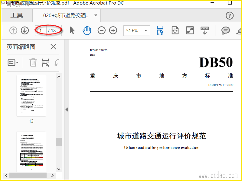 DB50∕T 991-2020 城市道路交通运行评价规范