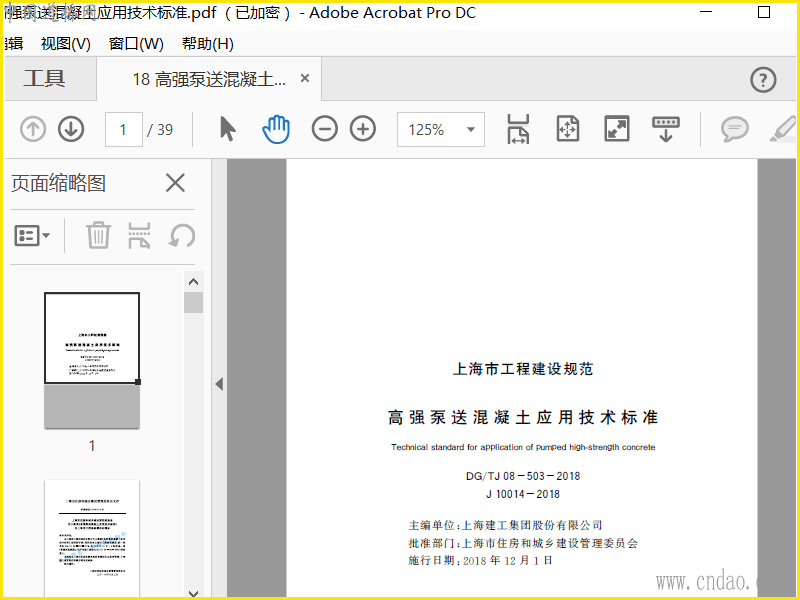 2018上海高强泵送混凝土应用标准