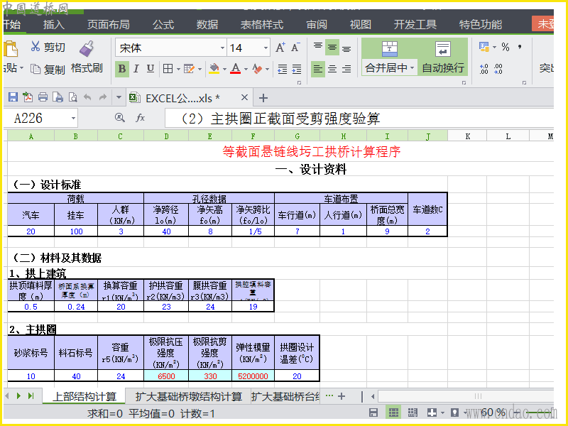 拱桥计算程序——EXCEL公式嵌套,设计计算模板.xls