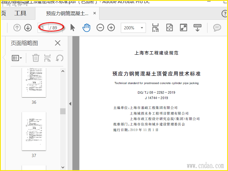DG∕TJ08-2292-2019 预应力钢筒混凝土顶管应用技术标准