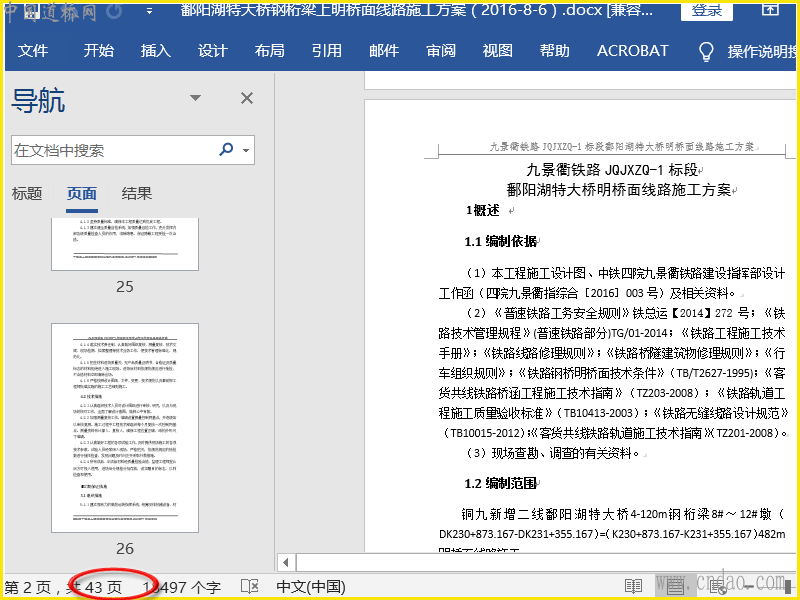 鄱阳湖特大桥明桥面线路施工方案 doc共43页