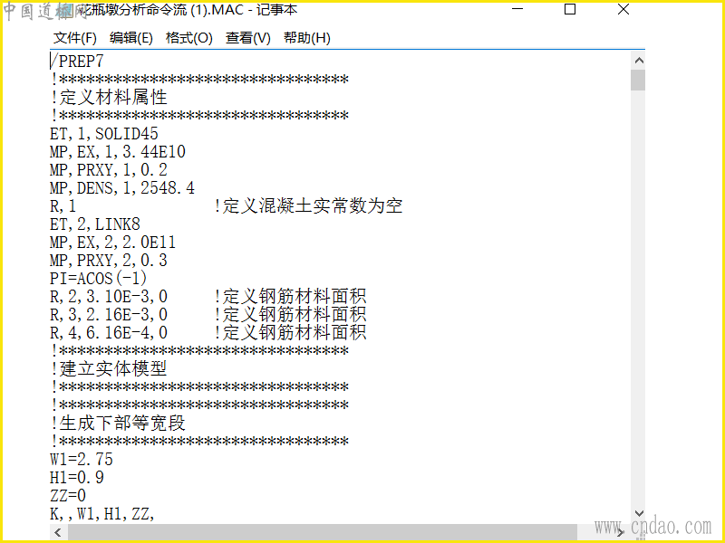 采用参数化APDL语言编制花瓶墩结构分析文件