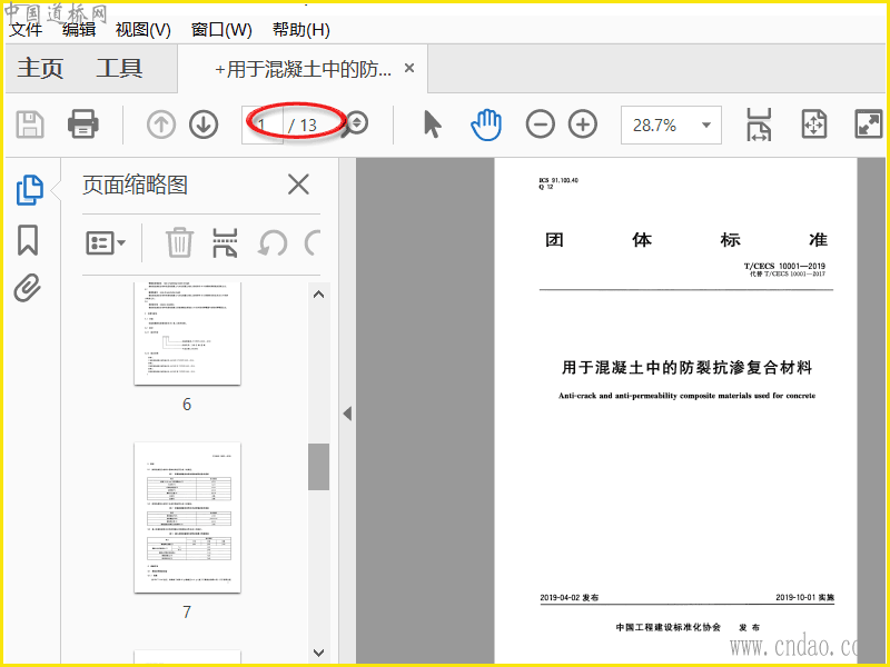 T∕CECS 10001-2019 用于混凝土中的防裂抗渗复合材料