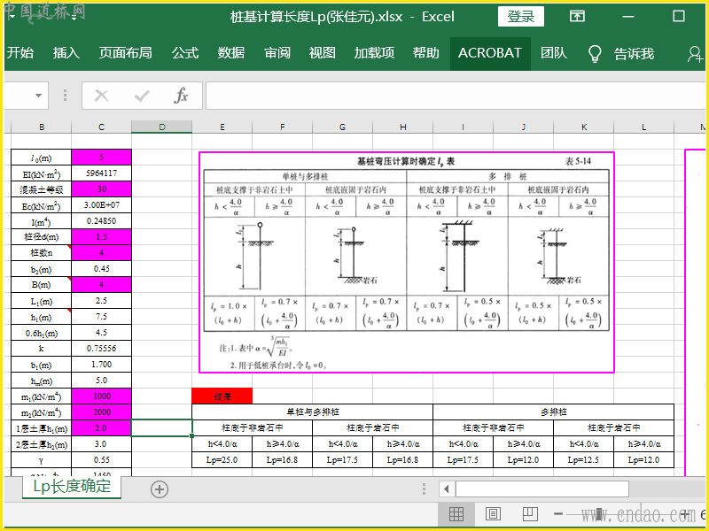 本资料旨在为桩基计算过程中,计算长度选取提供计算表格。