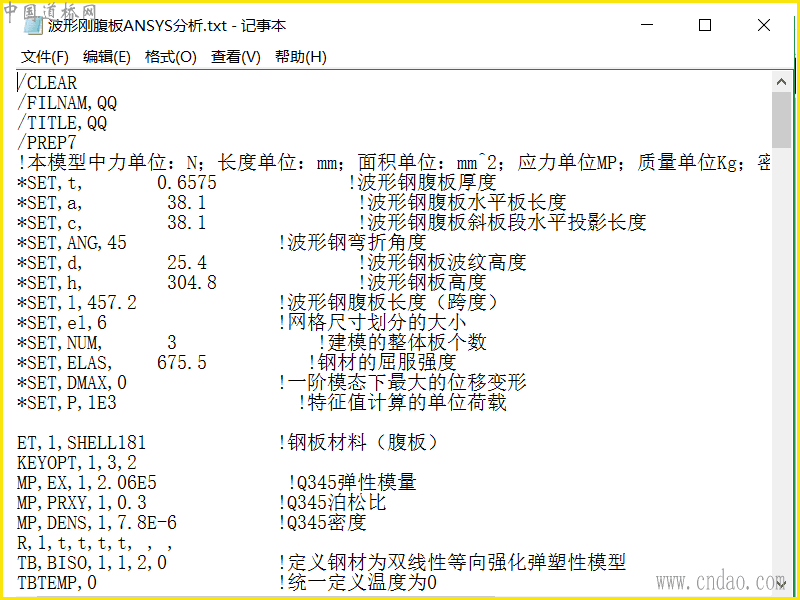 波形刚腹板ANSYS分析命令流