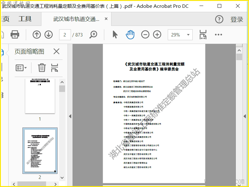武汉轨道交通消耗量定额及全费用基价表