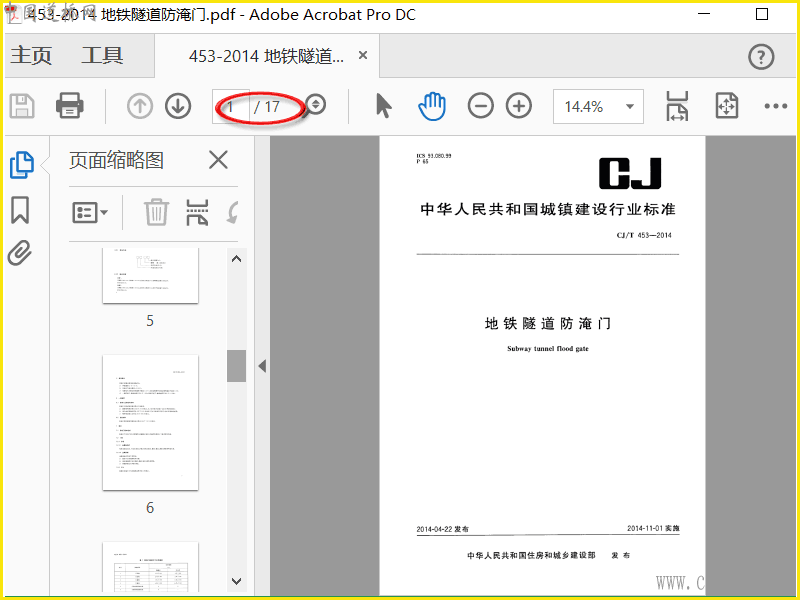 CJ∕T 453-2014地铁隧道防淹门
