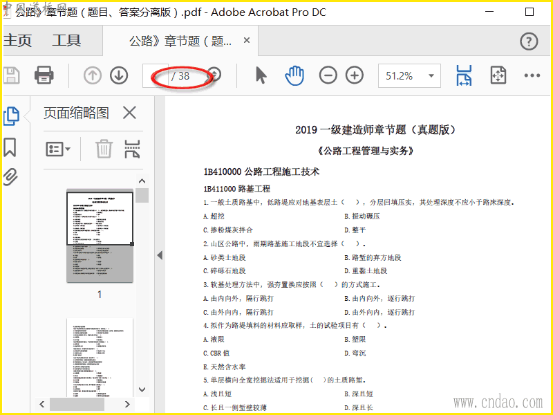 2019年一建《公路》章节题(题目、答案分离版),PDF格式,已去水印,添加书签,合计38页