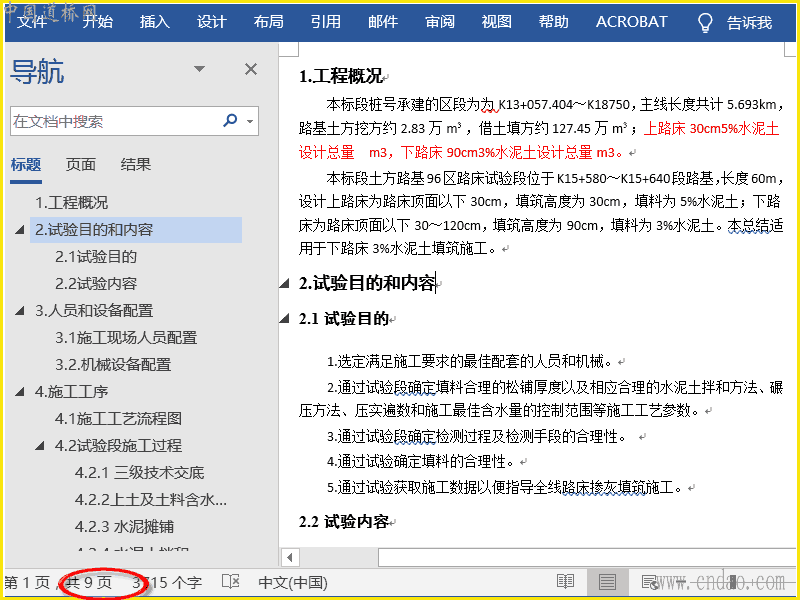 水泥试验段总结 doc共9页