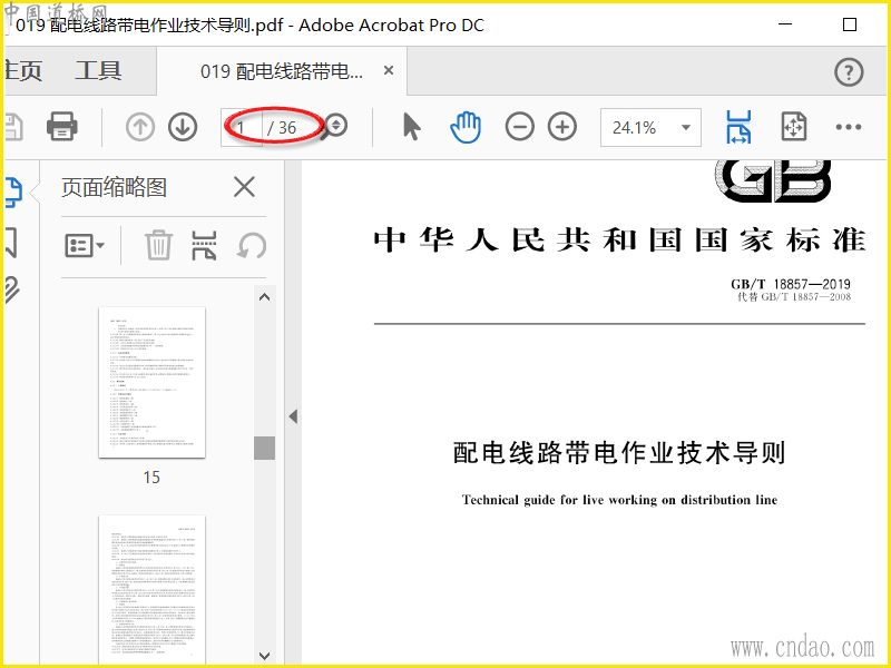 GB18857-2019配电线路带电作业技术导则