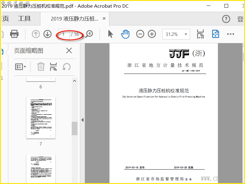 JJF浙2019 液压静力压桩机校准规范