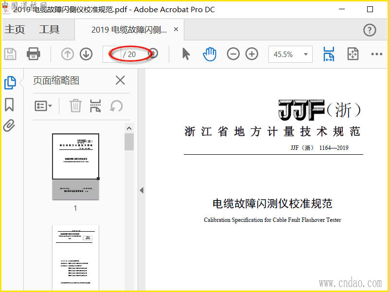 JJF(浙)1164-2019 电缆故障闪侧仪校准规范