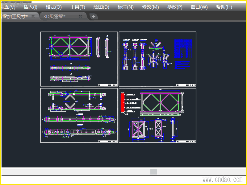 此CAD图纸为国产321型3m*1.5m贝雷梁加工尺寸CAD图,图中附有竖杆常规的加强方式,另外还有一张贝雷梁CAD三维图纸