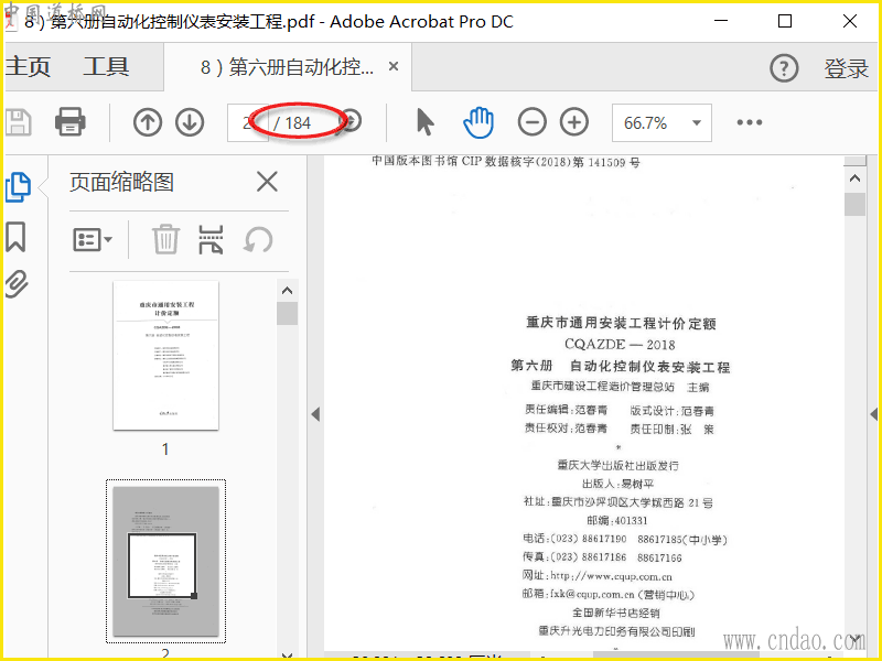 重庆市通用安装工程计价定额(CQAZDE-2018)第六册自动化控制仪表安装工程,纸质版扫描,无任何水印。