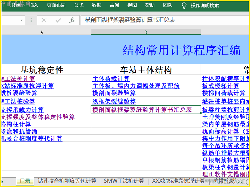 地铁项目常用的基坑支护及结构计算的EXCEL表格