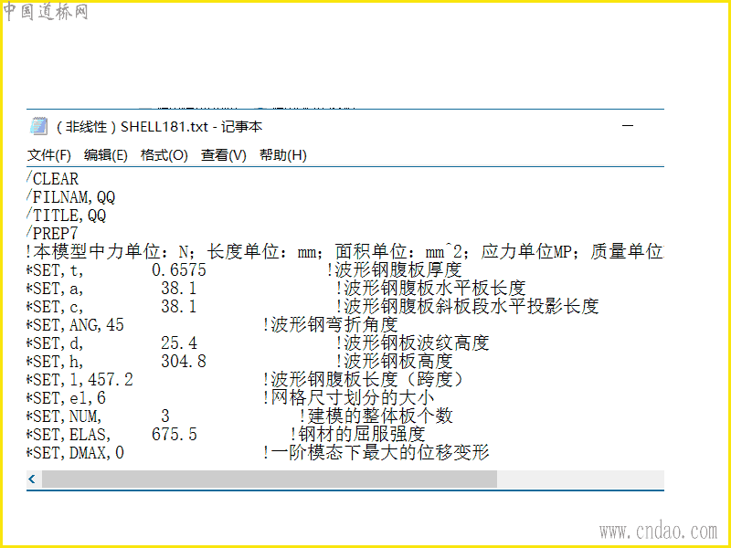 这是一个关于波形钢腹板,腹板屈曲计算的命令程序,可以根据自己钢腹板直接修改参数进行再次运算,通过ANSYS直接绘制侧向位移与腹板剪切力之间的关系,算出腹板屈曲承载力,可用于科研与设计。