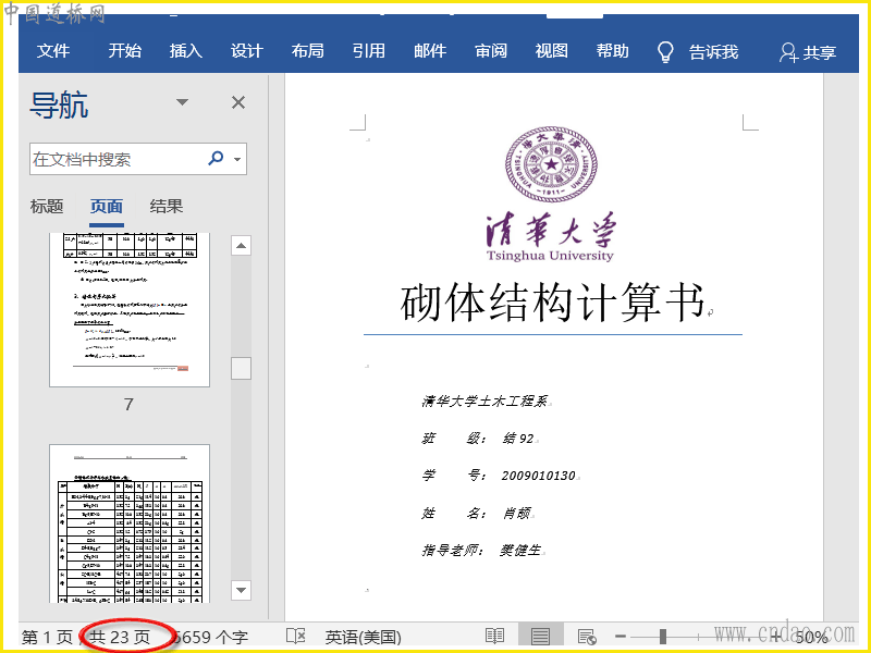清华大学 砌体结构计算书
