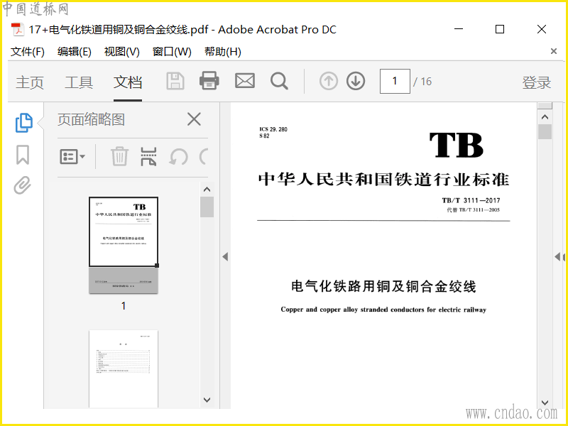 TB-2017电气化铁道用铜及铜合金绞线