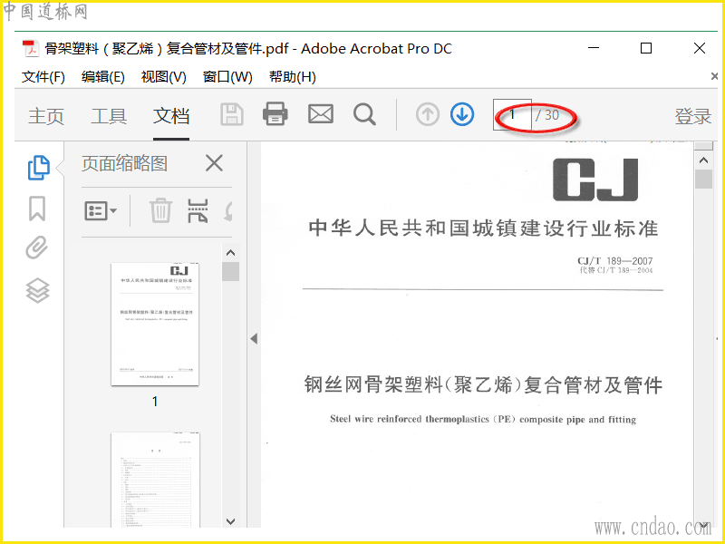 CJ/T189-2007 钢丝网骨架塑料(聚乙烯)复合管材及管件