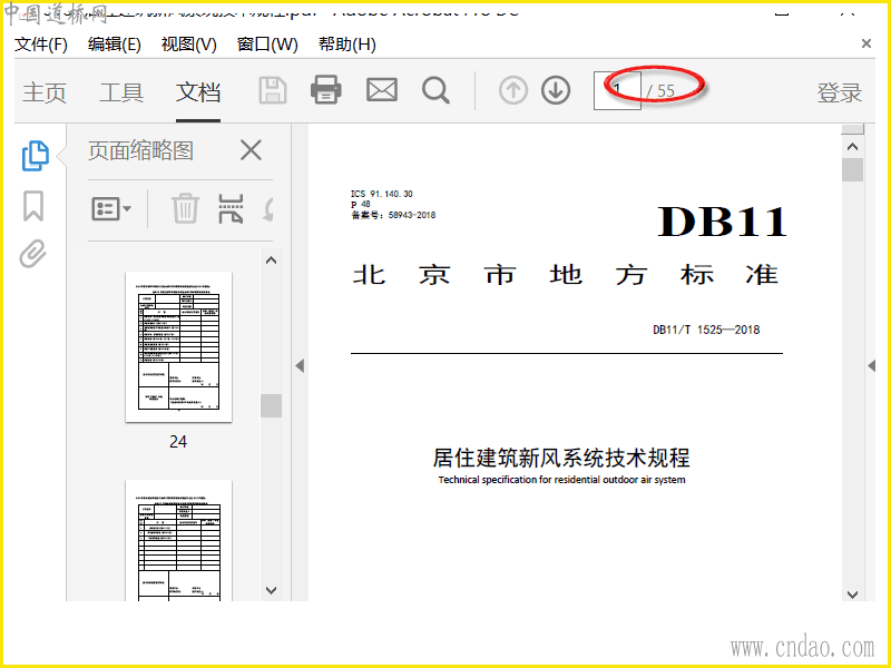 DB11!T~1525-2018 居住建筑新风系统技术规程