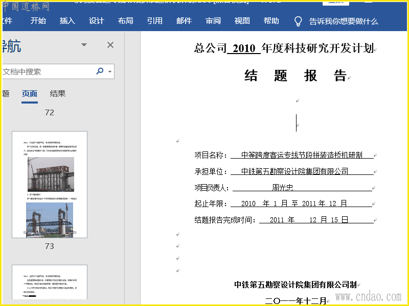 总公司结题报告-中等跨度客运专线节段拼装造桥机研制