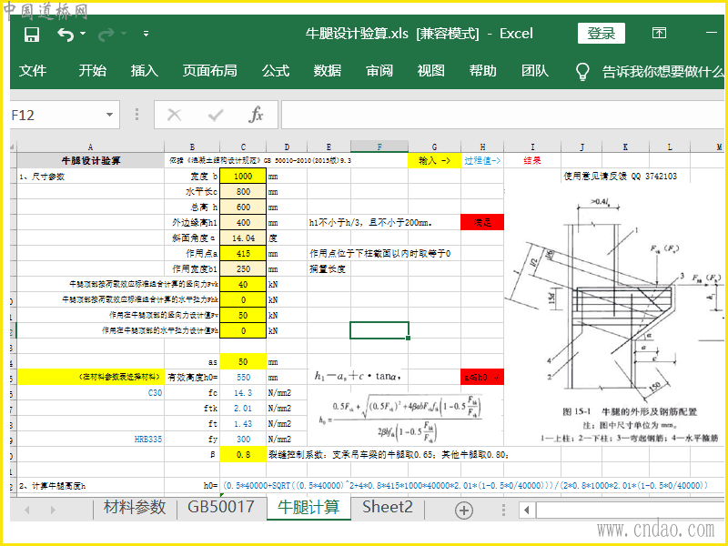 按GB 50010-2010(2015版)《混凝土结构设计规范》,工程设计人自己编制的“牛腿设计验算.xls”,计算公式、结果判定详细展示,通过8个实际工程算例实践验证。