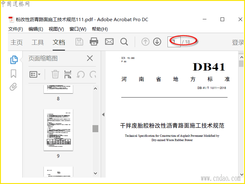 DB41T1611-2018干拌废胎胶粉改性沥青路面施工技术规范
