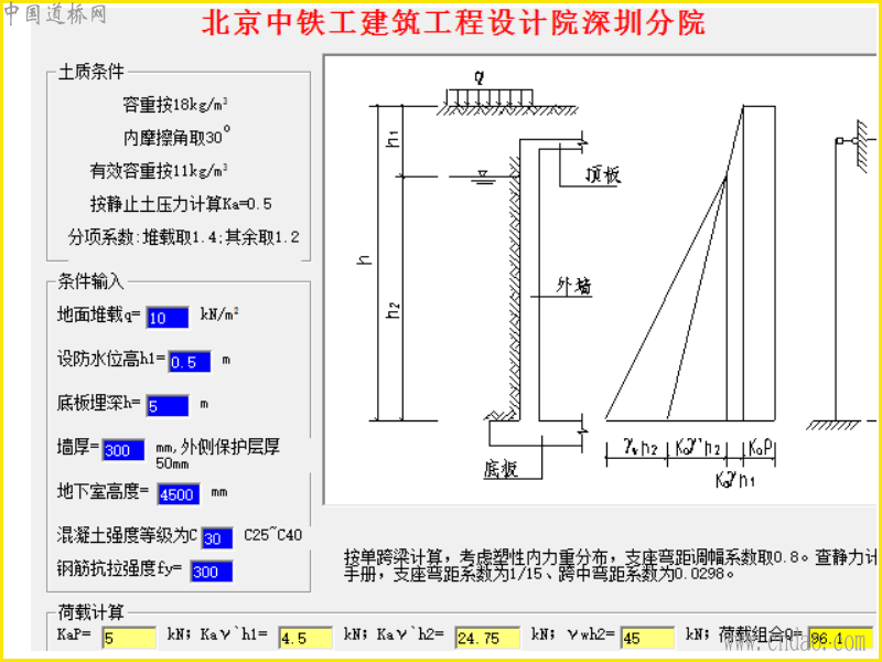 单层地下室:地下室计算程序(含详细计算书)