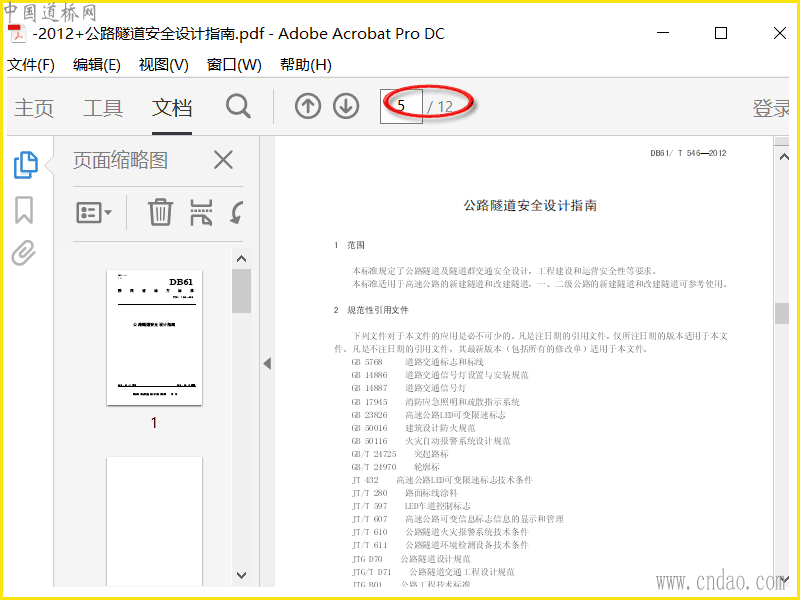 DB 61 T 546-2012 公路隧道安全设计指南