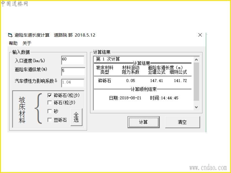 根据入口车速、避险车道纵坡及坡床材料计算避险车道长度