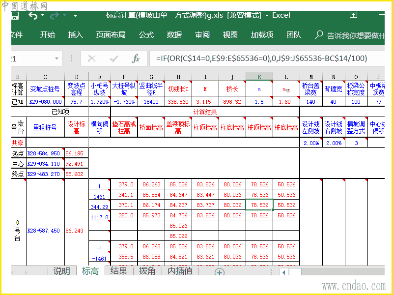 标高计算表格(横坡由单一方式调整)xls