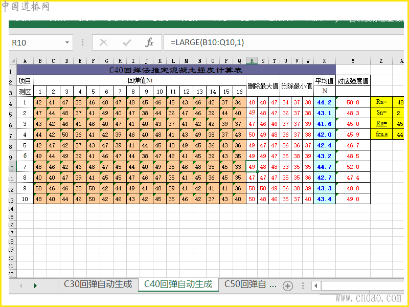 砼回弹自动随机计算表C30、40、50