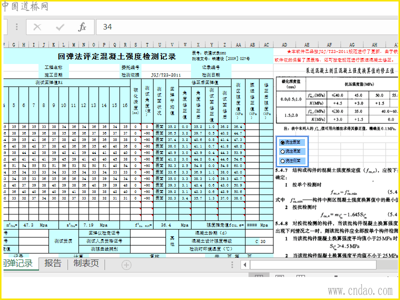 (支持角度修正 测试面修正 泵送混凝土回弹计算)