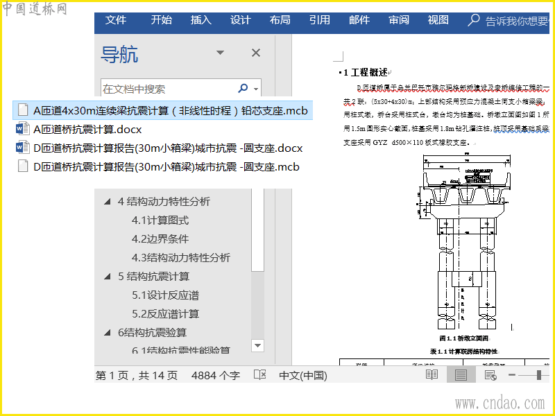 包含抗震计算书和对应模型,包括板式橡胶支座的反应谱分析和高阻尼支座的时程分析