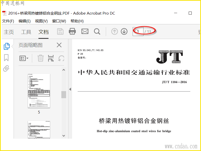 桥梁用热镀铸铝合金钢丝(JT-T 1104-2016 ).